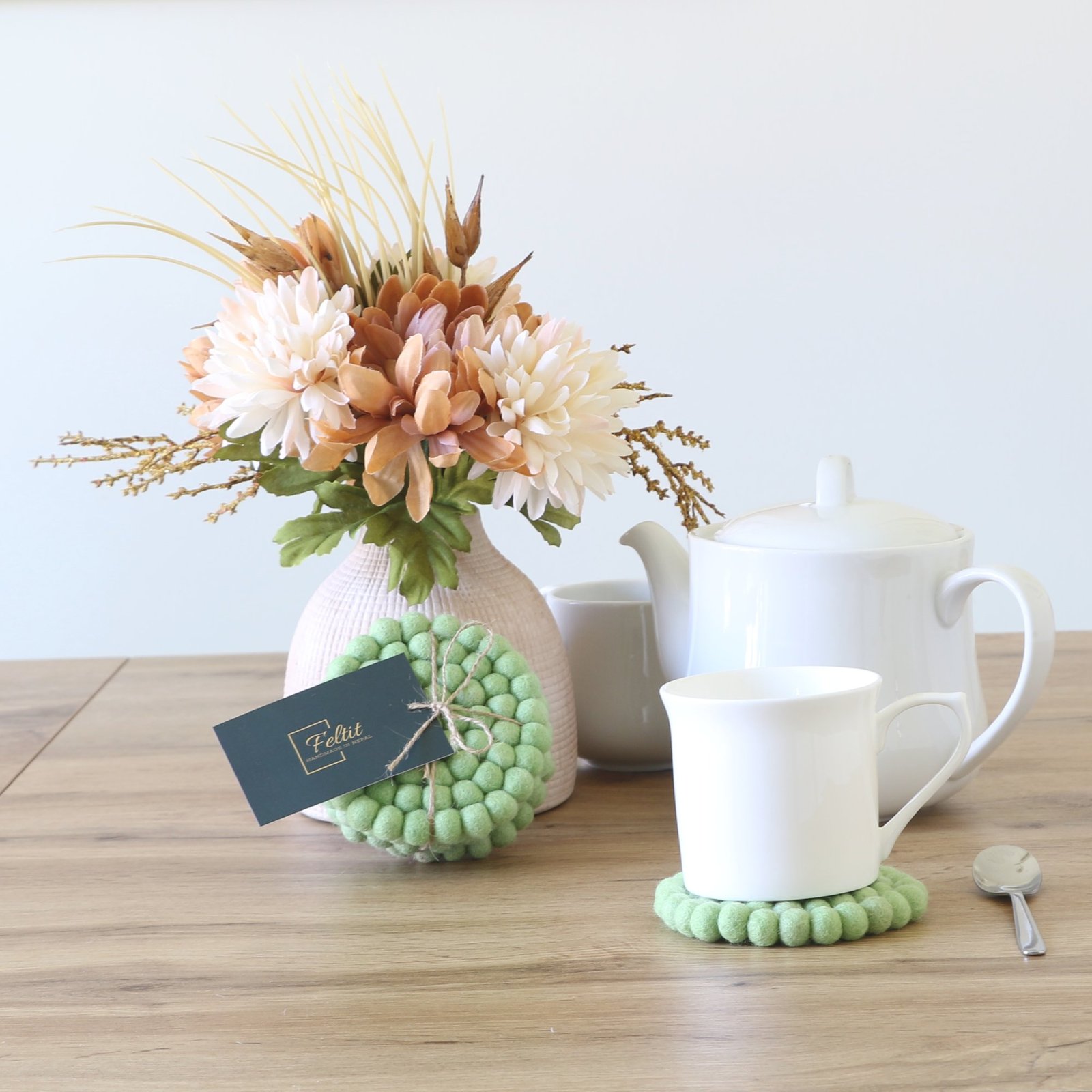 Elevate your dining experience while keeping your surfaces safe with our Felt Coasters. Meticulously handcrafted from 100% natural virgin wool. These sustainable Coasters are not just aesthetically pleasing; they are also exceptional heat insulators, protecting your table tops and countertops from glasses and mugs.